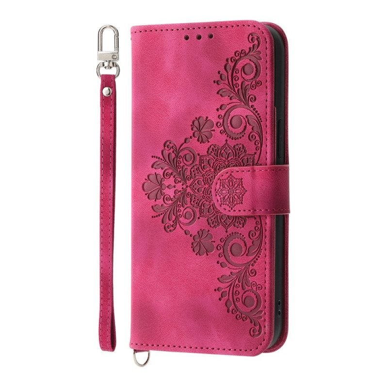Kotelot Realme 14 Pro Plus 5g Pitsimokkanahkaefekti Hihnalla Ja Olkahihnalla Suojakuori
