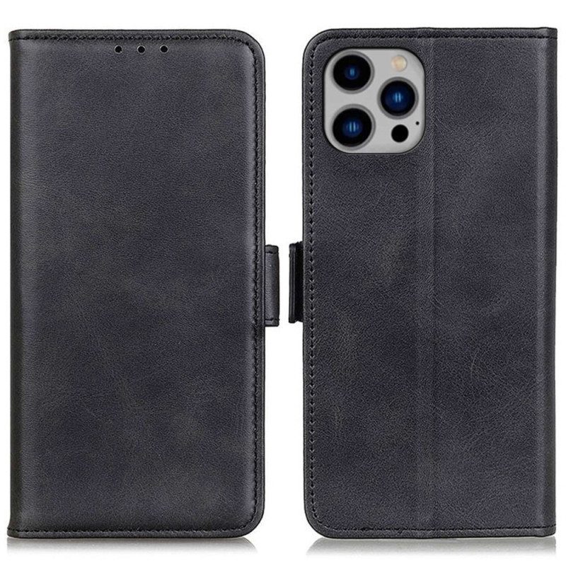 Iphone 14 Plus -Puhelimesi Keinonahkakuoressa On Suoja, Korttipaikat Ja Kätevä Kaksoislukko Turvallisen Pitoa Varten.