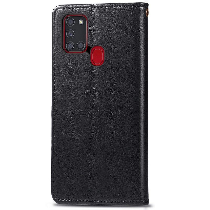 - Ensiluokkaisesta keinonahasta valmistettu kansi Samsung Galaxy A21s:lle